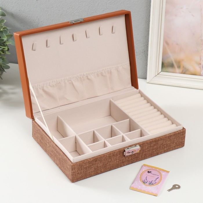 Шкатулка кожзам для украшений "Шоколад" комбинированная 26,7х18,5х7,5 см