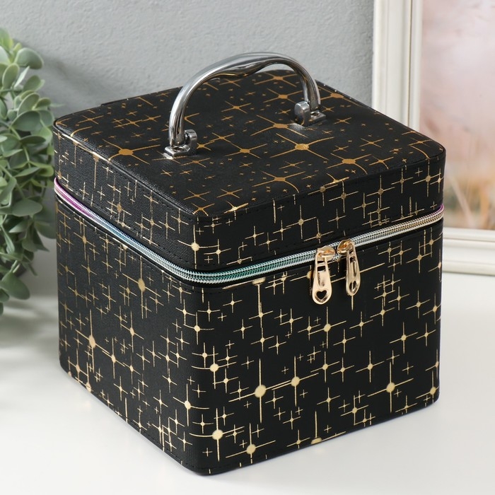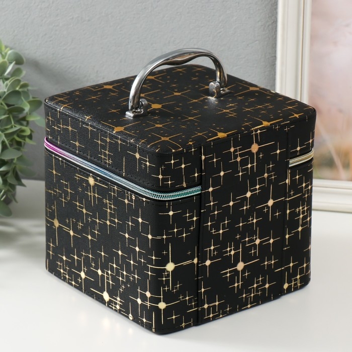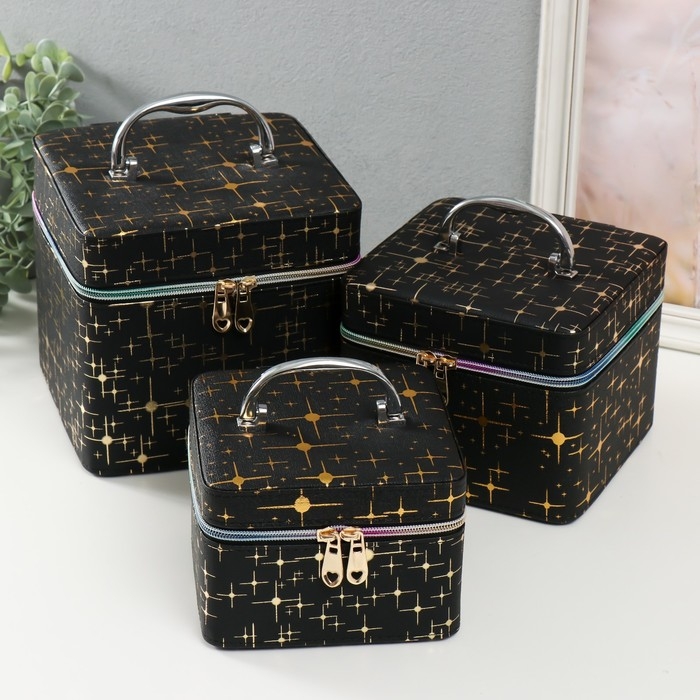 Шкатулка кожзам с зеркалом "Вспышка на чёрном" н-р 3 шт 16,5х16,5х14 15х15х10,5 19х19х19 см 993621