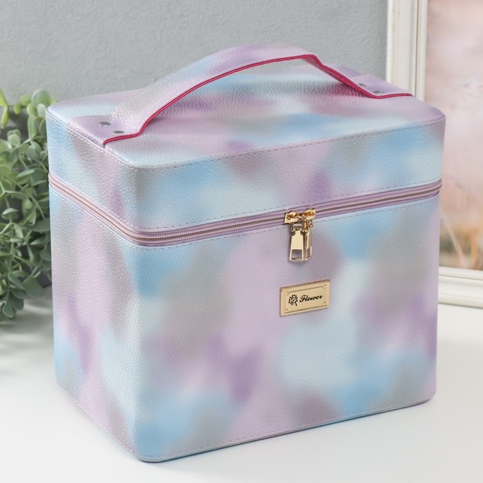 Шкатулка кожзам с зеркалом "Этажи. Сиреневый туман" 27х18х24 см