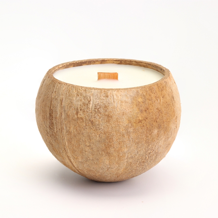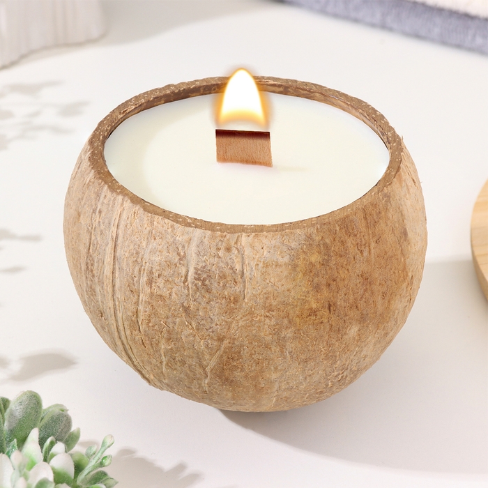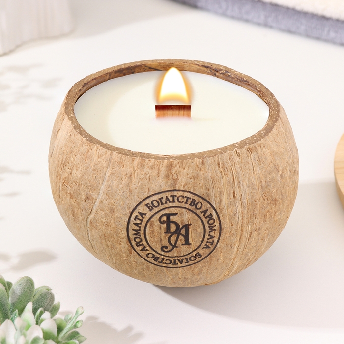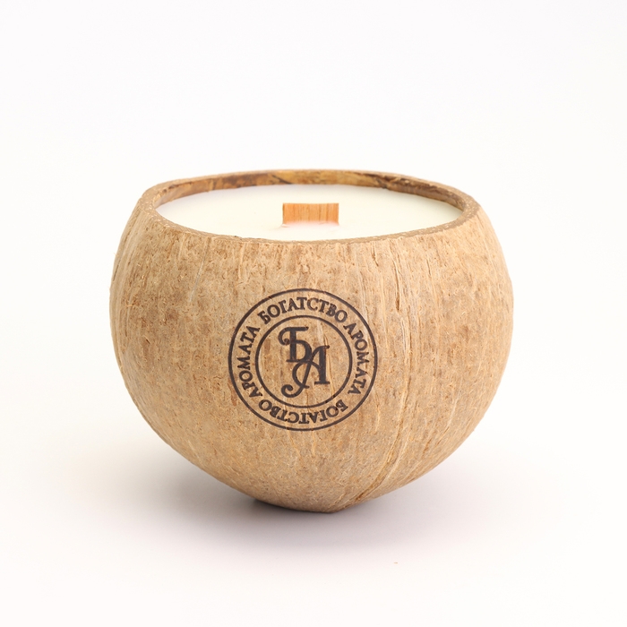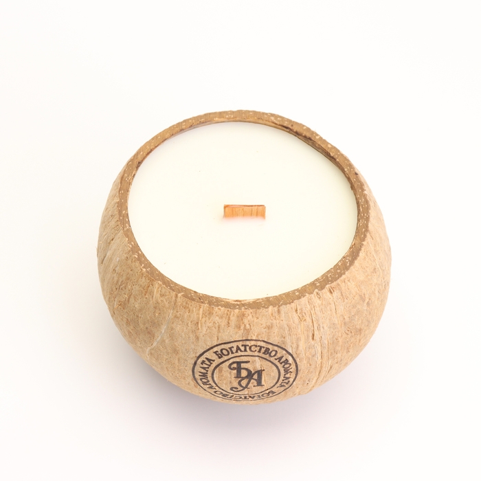 Свеча в кокосе ароматическая, апельсин, соевый воск, 8х10 см, в коробке