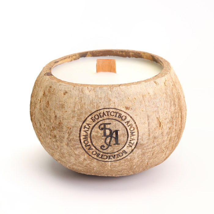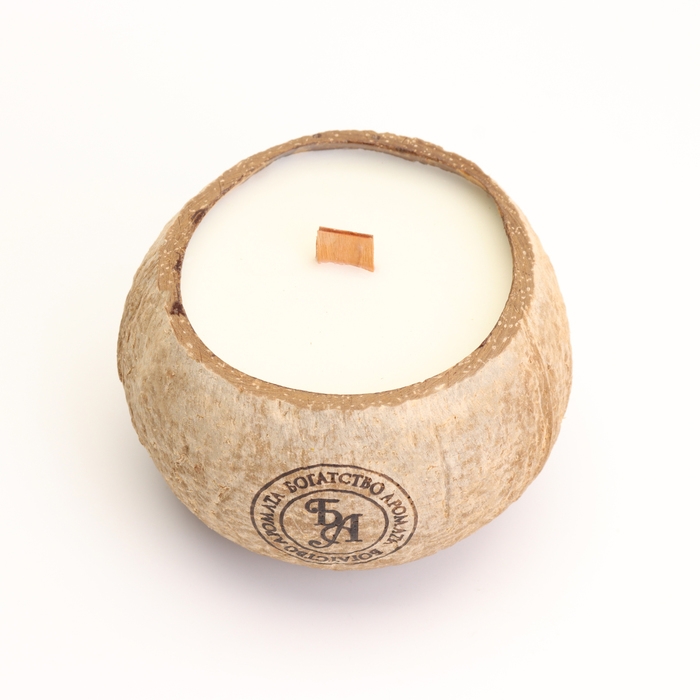 Свеча в кокосе ароматическая, белый чай, соевый воск, 8х10 см, в коробке