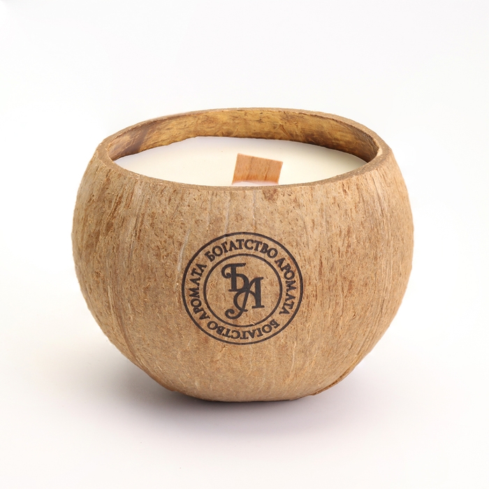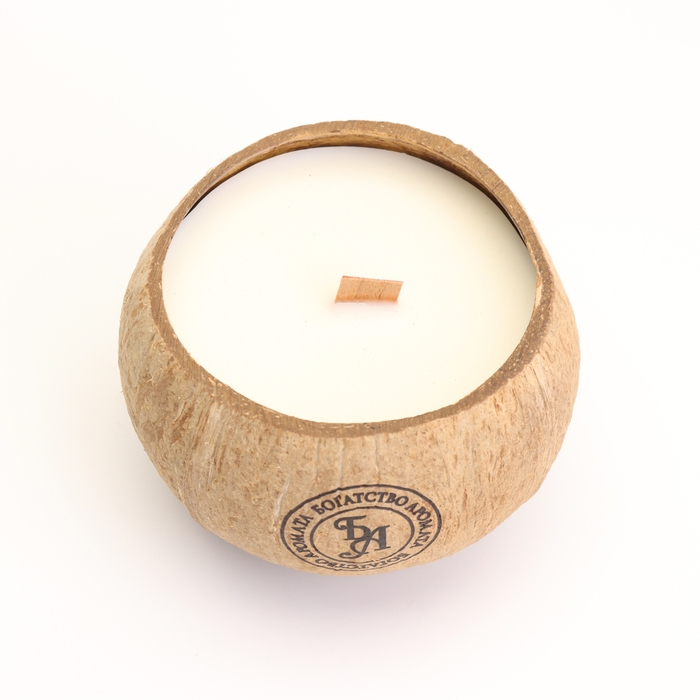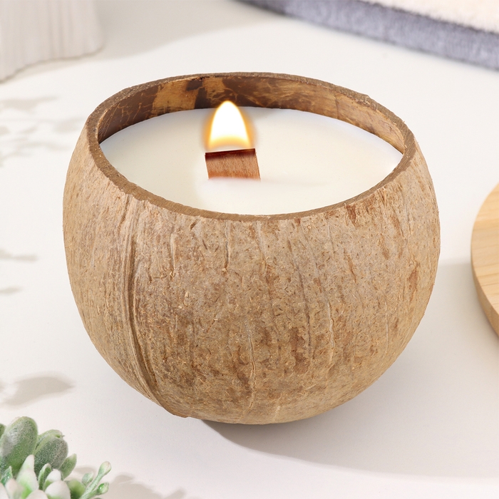 Свеча в кокосе ароматическая, вишня, соевый воск, 8х10 см, в коробке