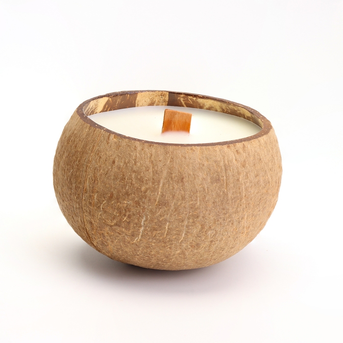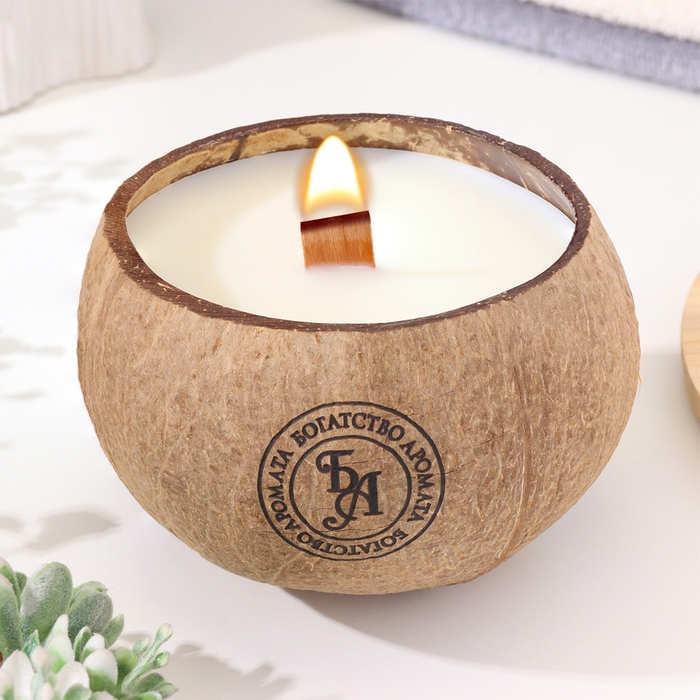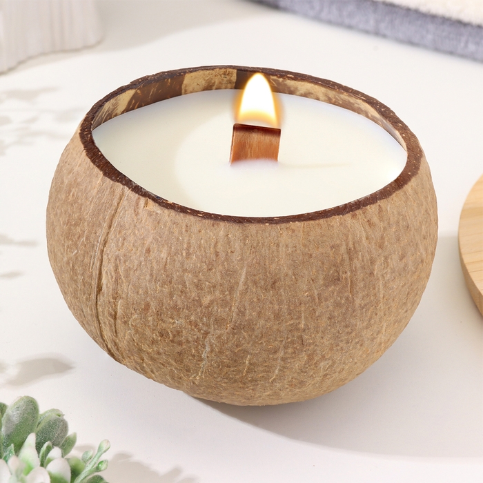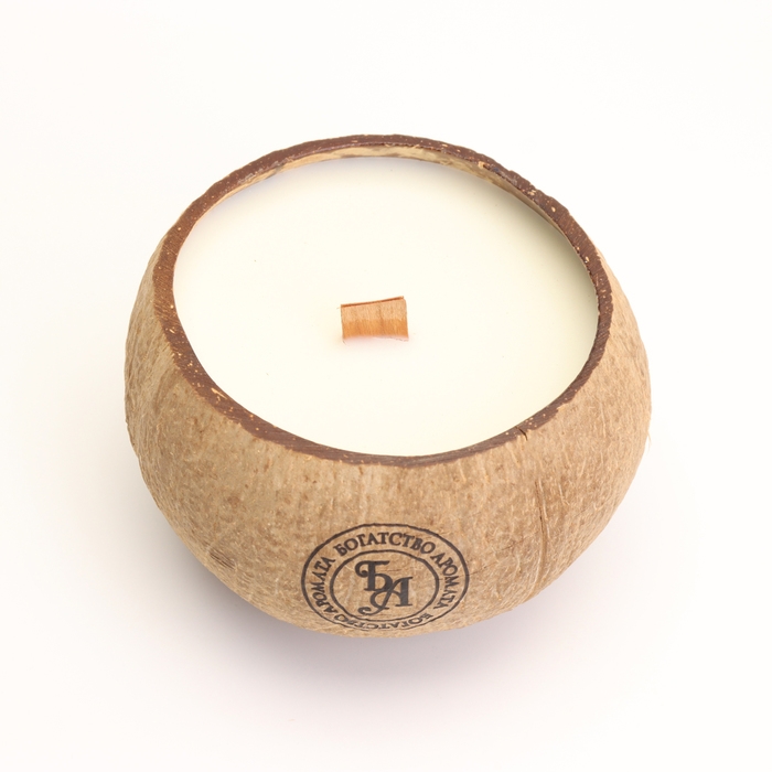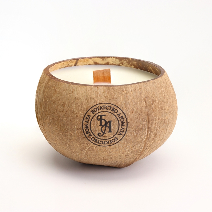 Свеча в кокосе ароматическая, сладкий апельсин и лайм, соевый воск, 8х10 см, в коробке
