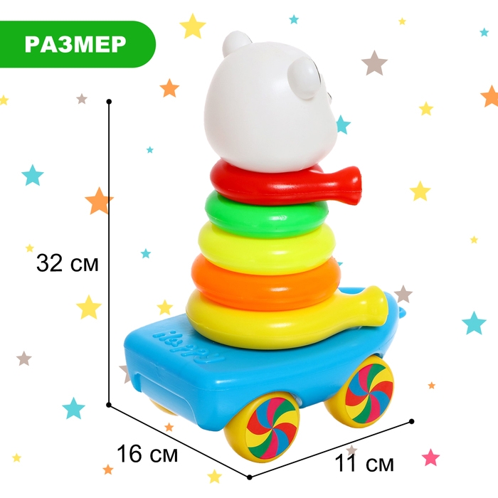 Каталка-пирамидка «Панда», 5 колец, на верёвке