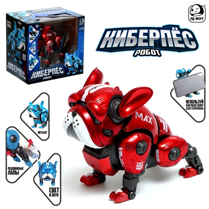 Робот-собака «Макс», световые, звуковые эффекты, металлический, цвет красный