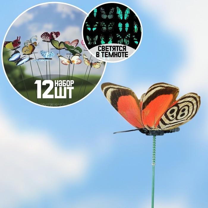 Штекер светящийся "Бабочка Вайси" 6,5х25см, набор 12шт, МИКС