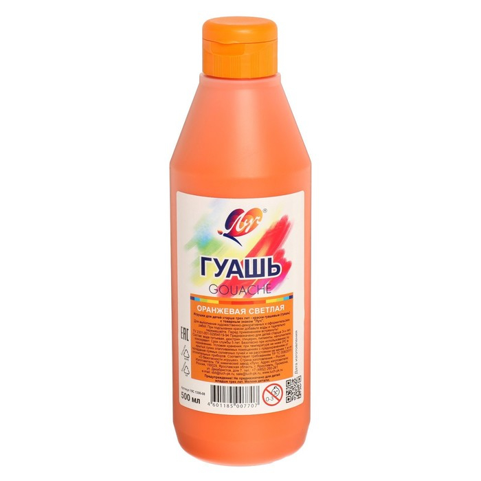 Гуашь "Луч", 500 мл, оранжевая светлая
