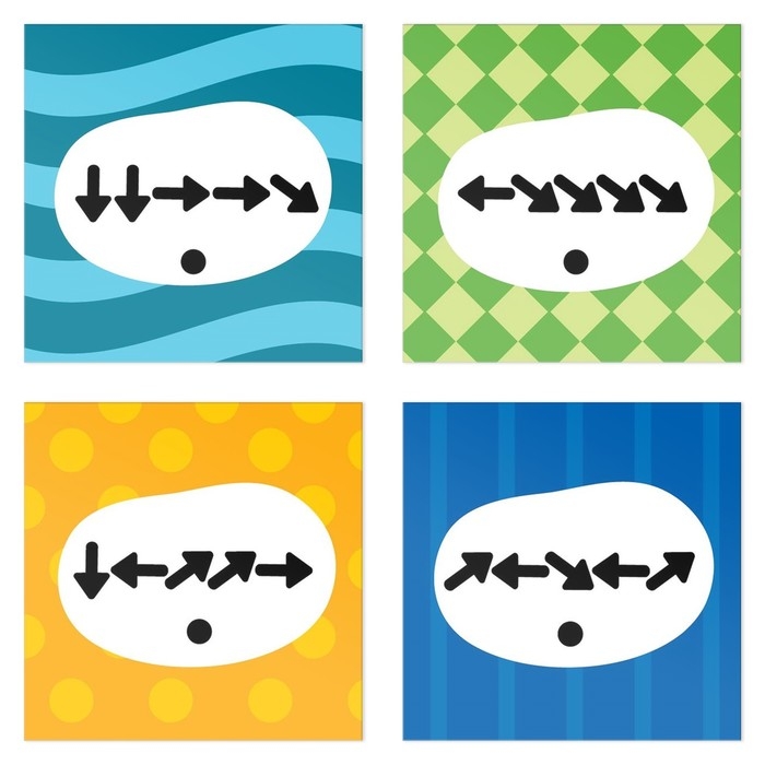 - Задача хозяина и кота:проследить по указанным стрелкам, как он будет двигаться по тапкам. Нельзя трогать фишку руками или строить путь, двигая пальцем по картам с тапками. Первый раз фишку на поле ставить не нужно. Путь начинается с центральной клетки игрового поля.