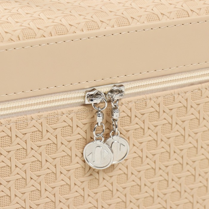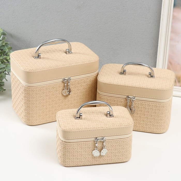 Шкатулка кожзам с зеркалом "Вязка. бежевая" набор 3 шт 21х13,5х13;18,5х10,5х10;16,5х15х23 см