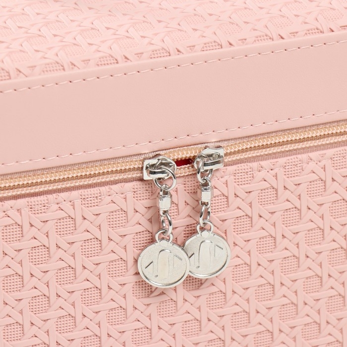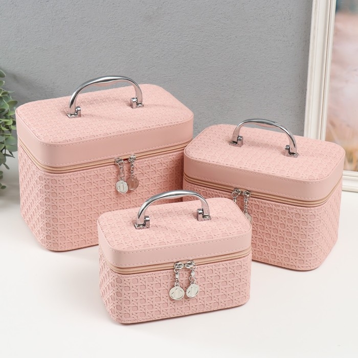 Шкатулка кожзам с зеркалом "Вязка. Розовый" набор 3 шт 21х13,5х13;18,5х10,5х10;16,5х15х23 см