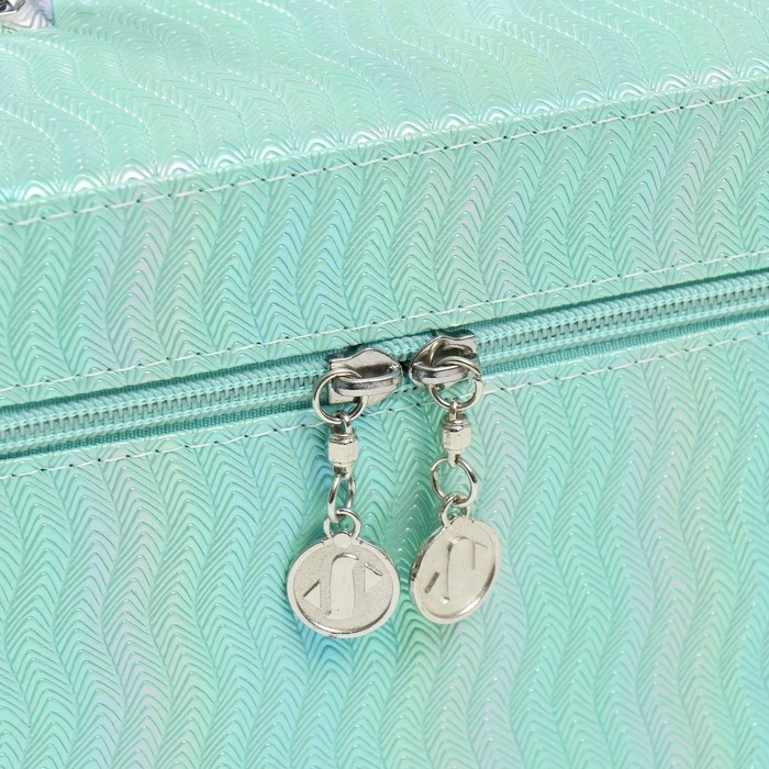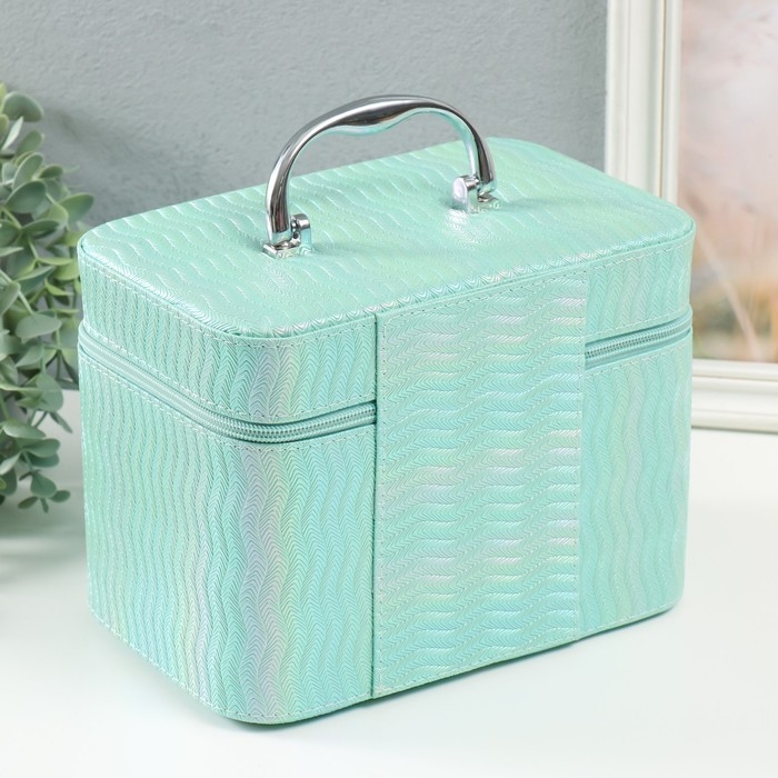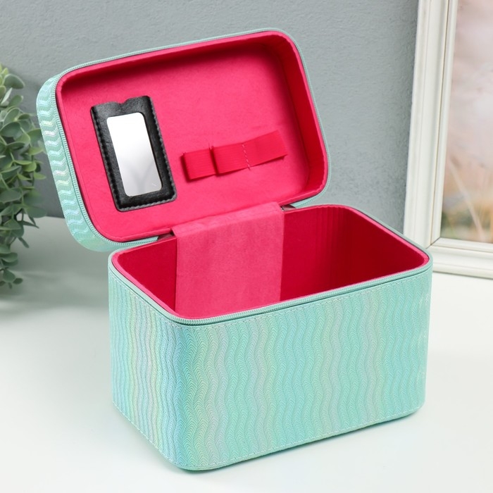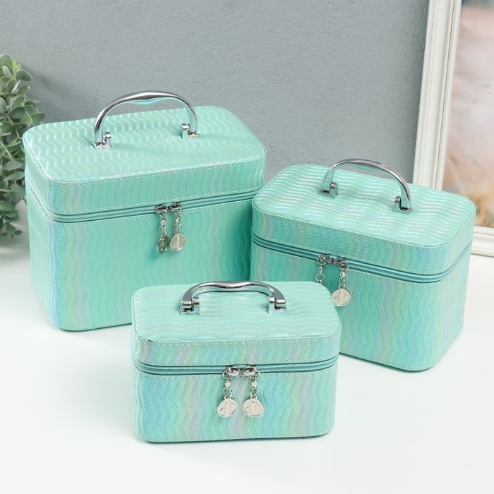 Шкатулка кожзам с зеркалом "Волны. Мята" набор 3 шт 21х13,5х13;18,5х10,5х10;16,5х15х23 см