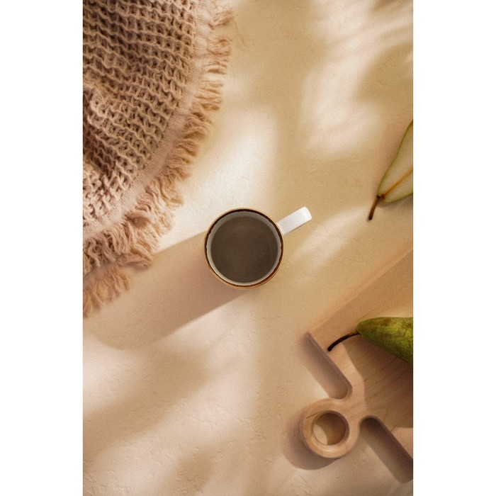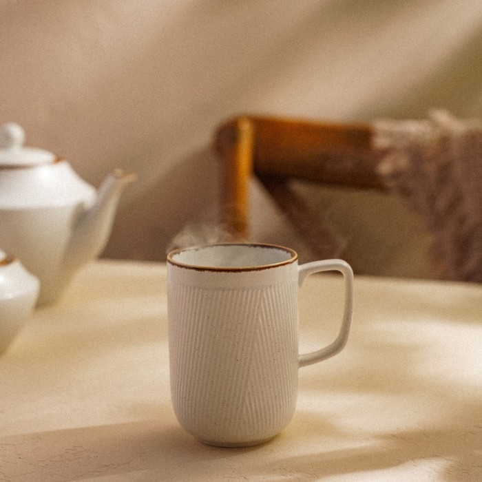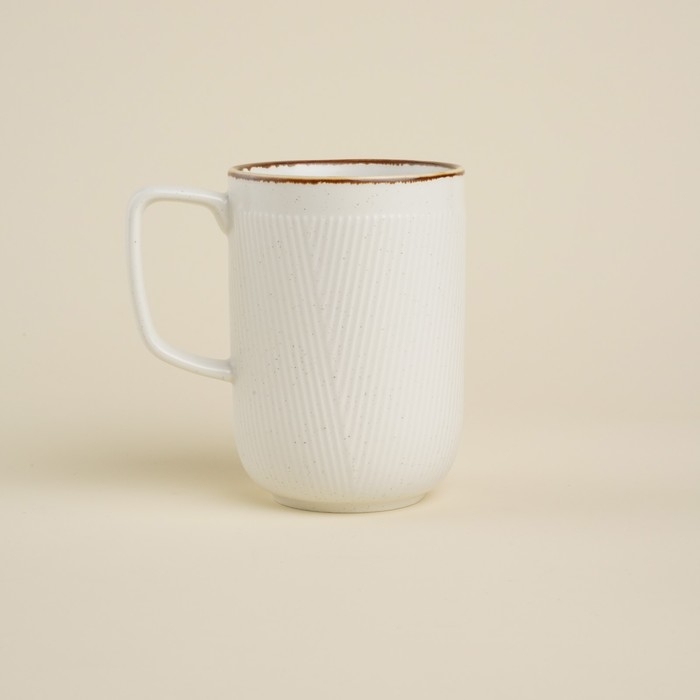 Гладкая текстура и тонкие полосы рисунка добавляют кружке минималистичности, что отлично подойдет для любого стиля интерьера — от классики до современного минимализма. Белый цвет кружки подчеркивает её универсальность, позволяя сочетаться с любыми столовыми сервизами.