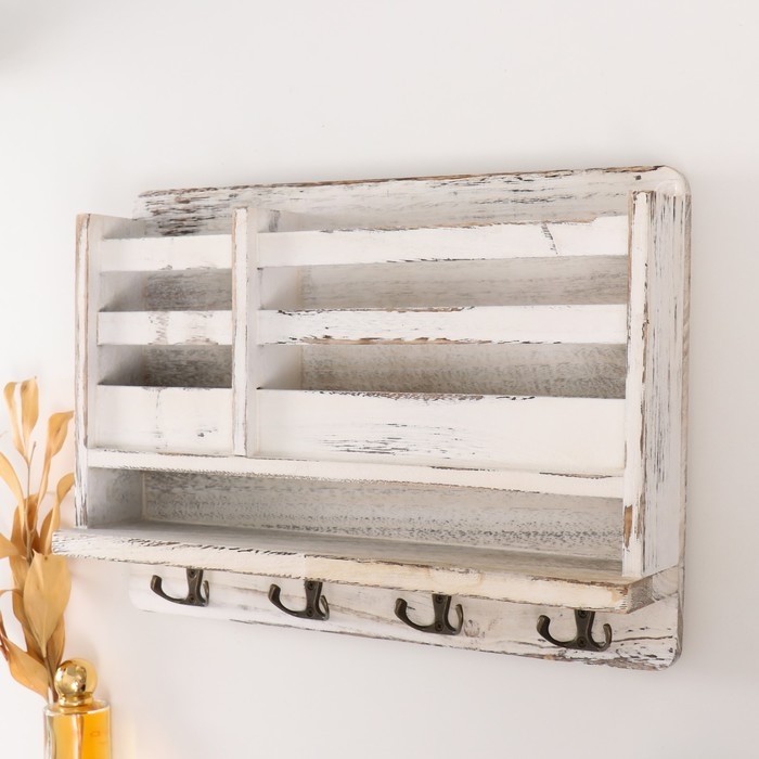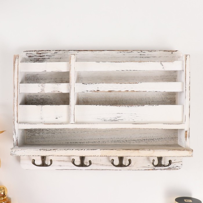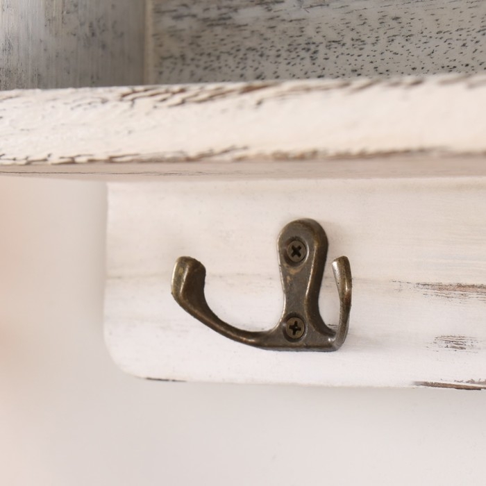 Крючки декоративные дерево с карманом и полочкой "Белый состаренный" 10,5х28х18 см