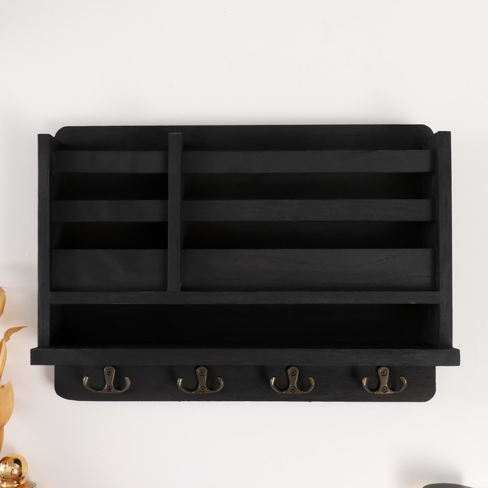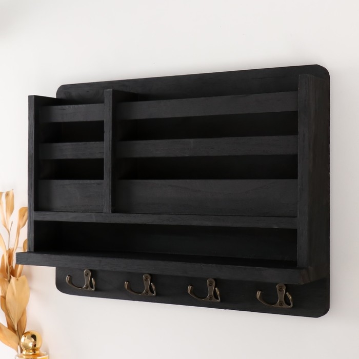 Крючки декоративные дерево с карманом и полочкой "Чёрный" 10,5х28х18 см