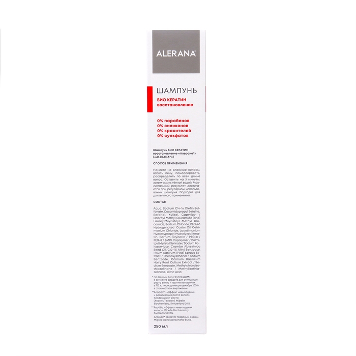 Шампунь для волос Алерана био кератин, восстанавливающий, 2 флакона по 250 мл