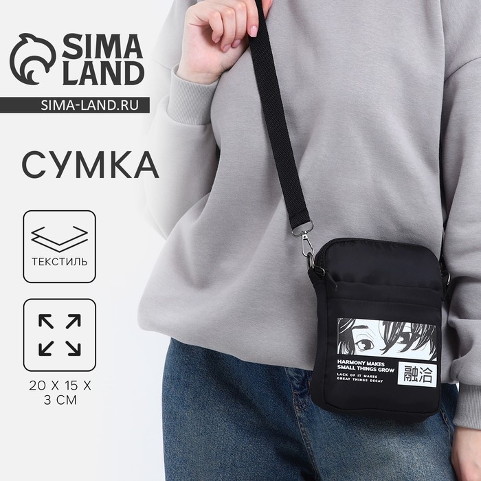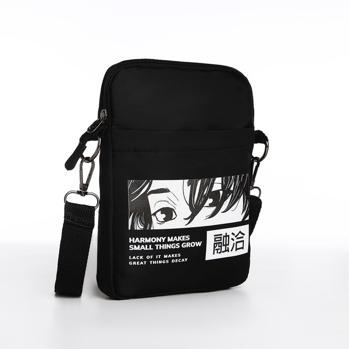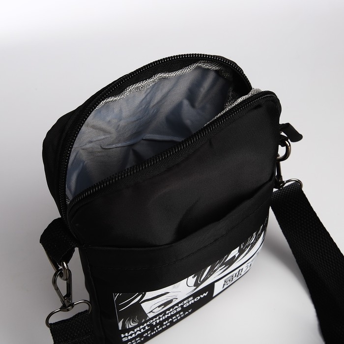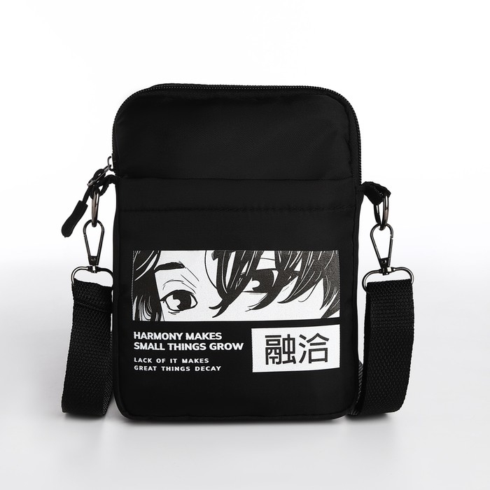 Сумка молодёжная на длинном ремне Anime, 20 х 15 х 3 см, отдел на молнии, цвет чёрный
