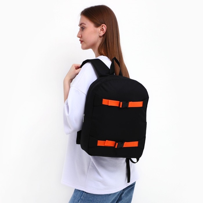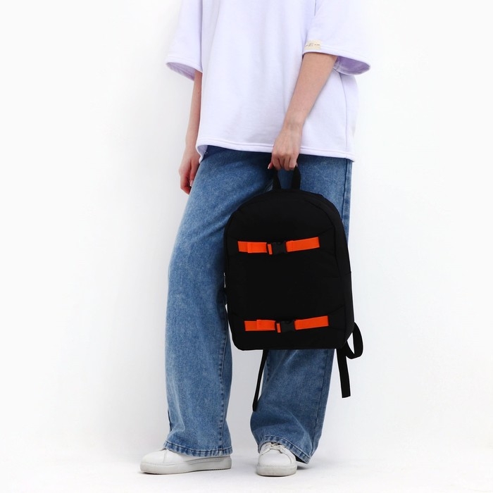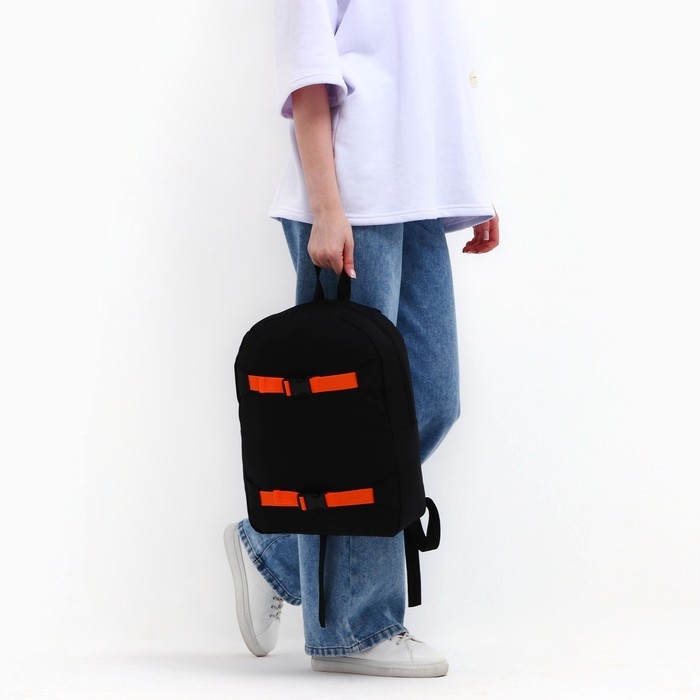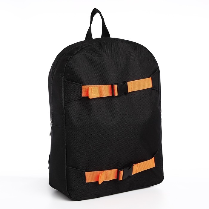 Рюкзак школьный текстильный с креплением для скейта, 38х29х11 см, 38 х см, цвет чёрный чёрный, отдел на молнии, цвет красный