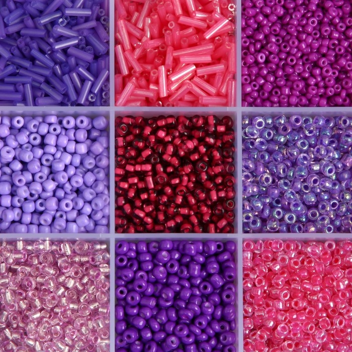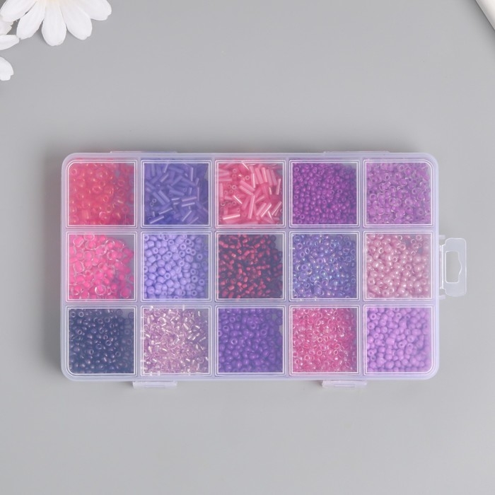 Бисер стекло 6/0, 8/0, 12/0 в шкатулке "Фиолетовый" стеклярус 15,5х9,5х1,6 см