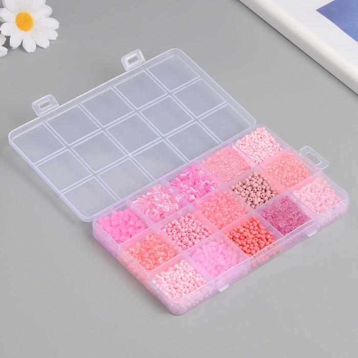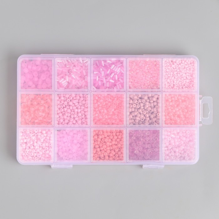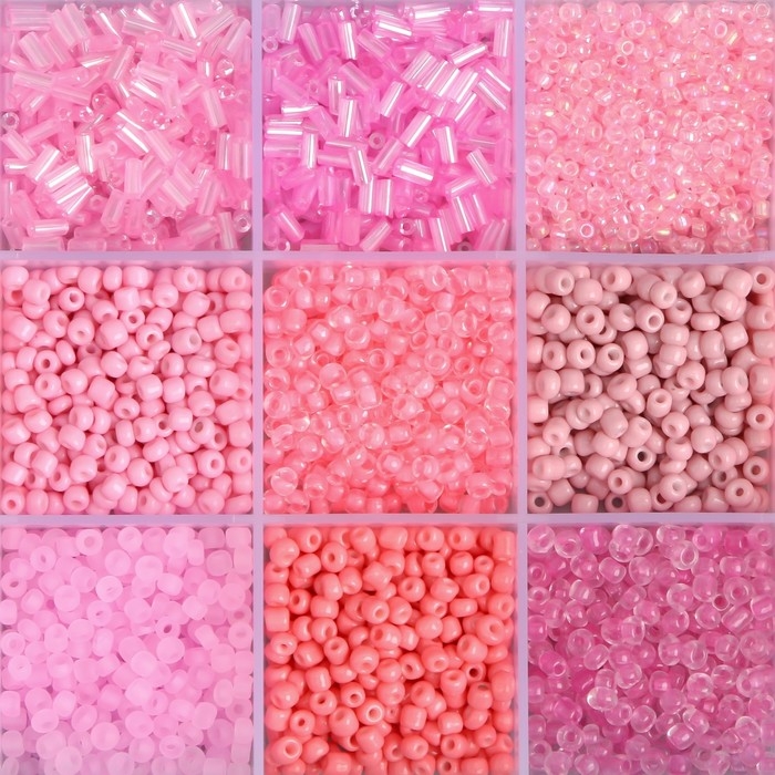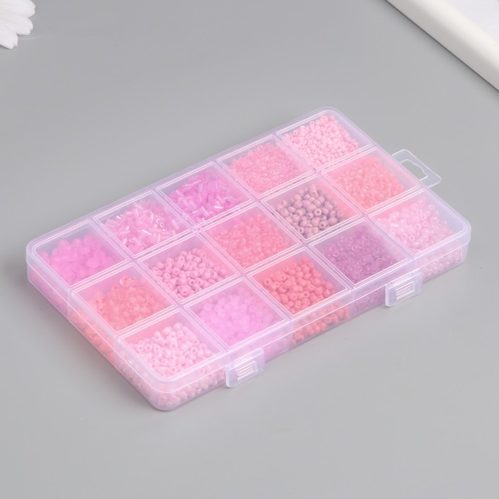 Бисер стекло 6/0, 8/0, 12/0 в шкатулке "Розовый" стеклярус 15,5х9,5х1,6 см