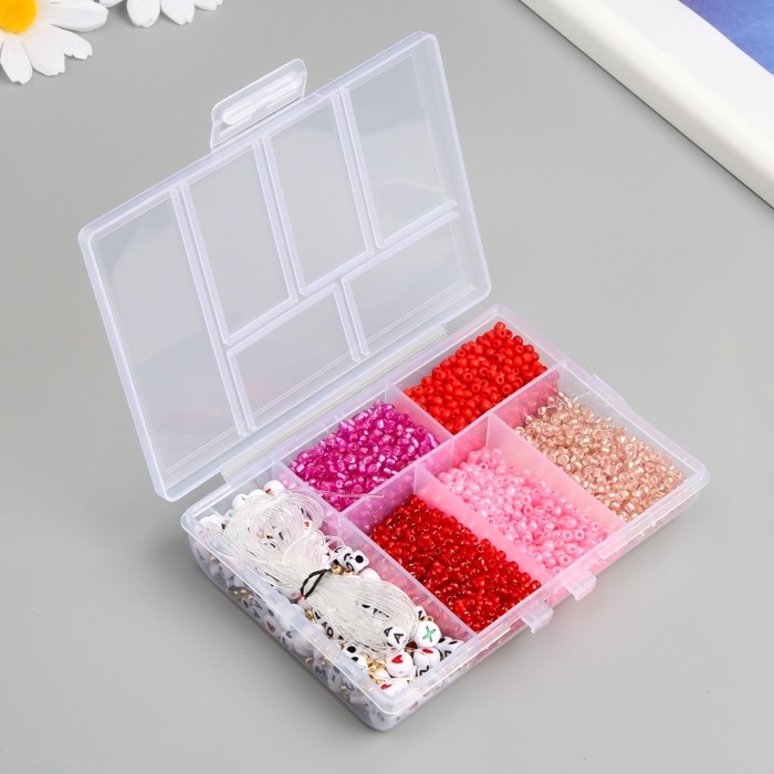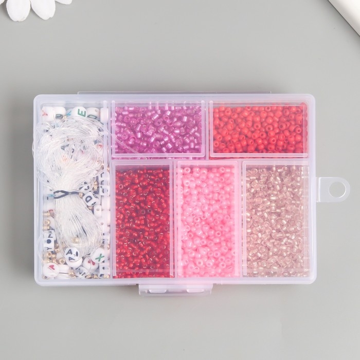 Бисер стекло 8/0 в шкатулке "Красный" бусины + нить 0,8 мм 5 м 12х8,4х2,2 см