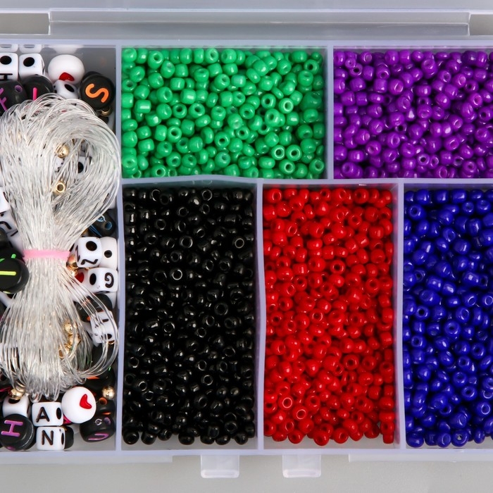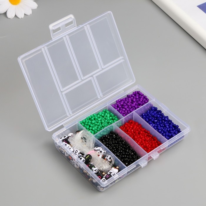 Бисер стекло 8/0 в шкатулке "Тёмный" бусины + нить 0,8 мм 5 м 12х8,4х2,2 см