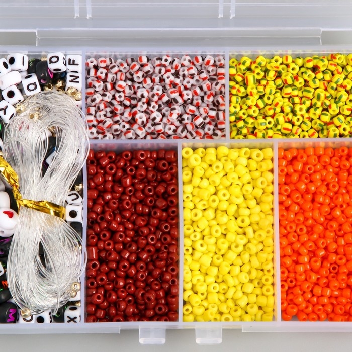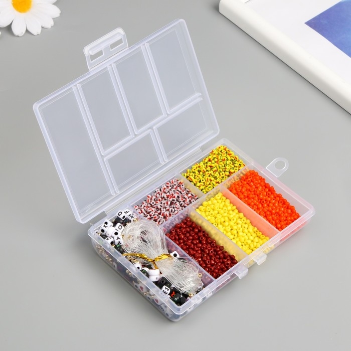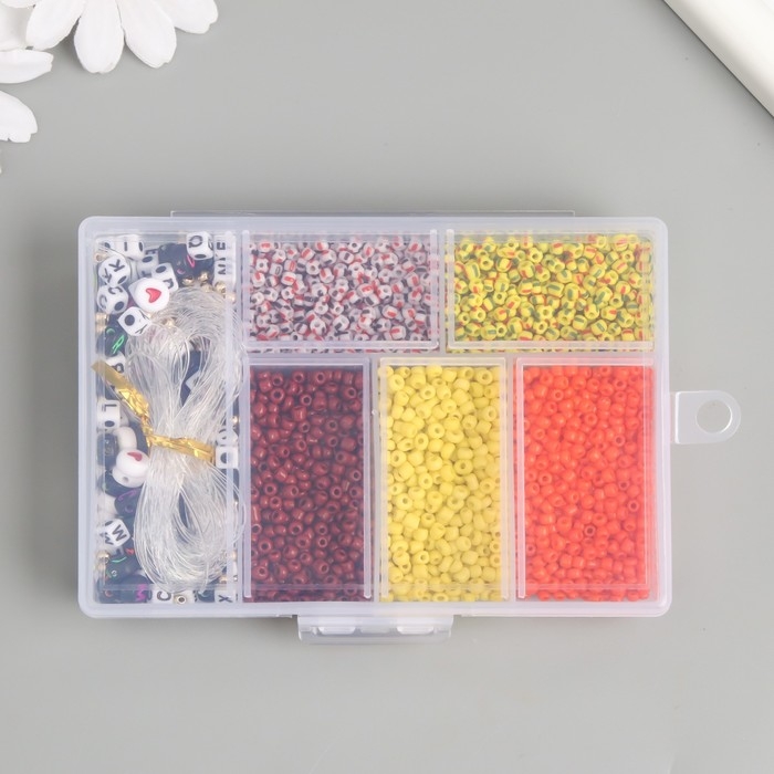 Бисер стекло 8/0 в шкатулке "Осень" бусины + нить 0,8 мм 5 м 12х8,4х2,2 см