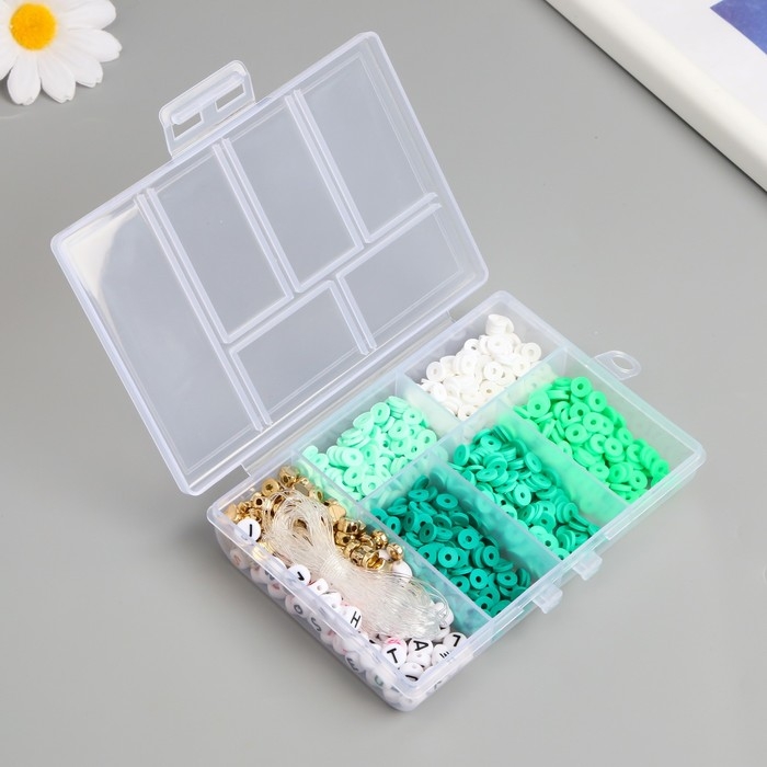 Бусины в шкатулке "Зелёные" нить 0,8 мм 5 м 12х8,4х2,2 см
