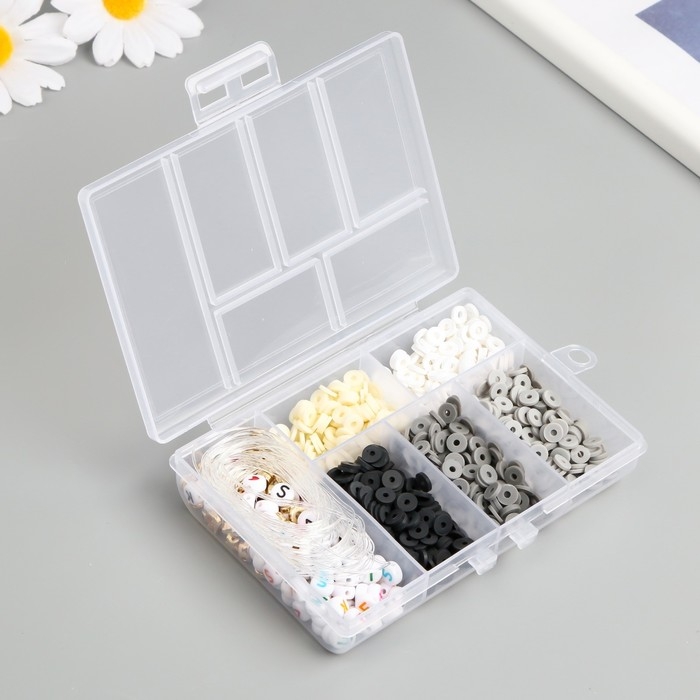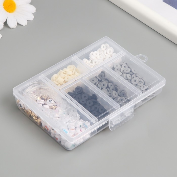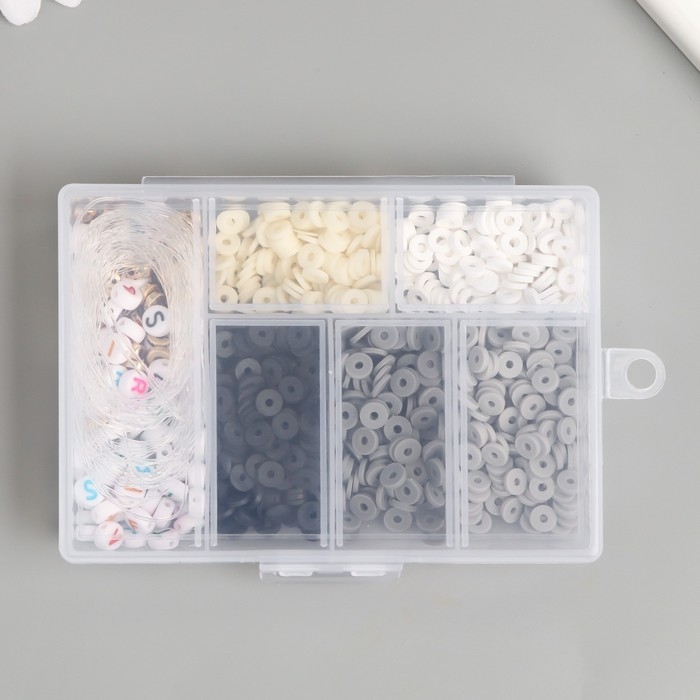 Бусины в шкатулке "Серые" нить 0,8 мм 5 м 12х8,4х2,2 см