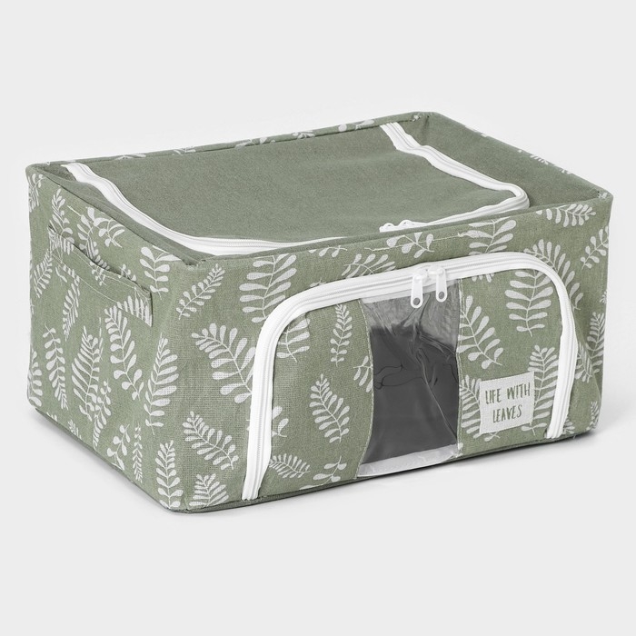 Кофр для хранения вещей Доляна Leaves, 39×29×20 см, 24 литра, цвет зелёный