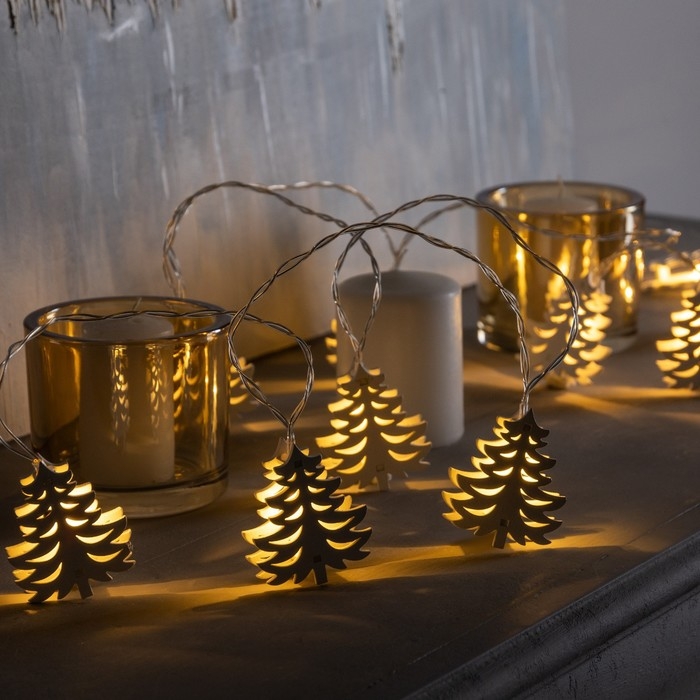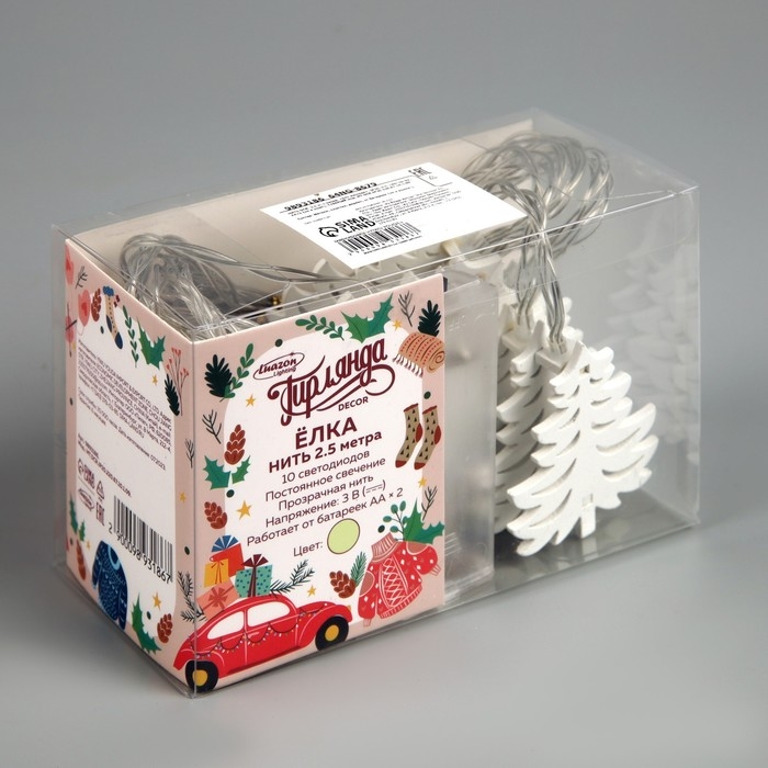 Гирлянда «Нить» 2.5 м с насадками «Ёлка», IP20, прозрачная нить, 10 LED, батарейки AAх2 (нет в комплекте), свечение тёплое белое