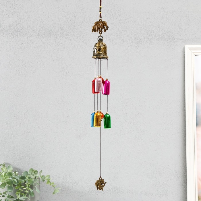 Музыка ветра металл "Слоны и 6 цветных колокольчиков" 55х5х4,2 см