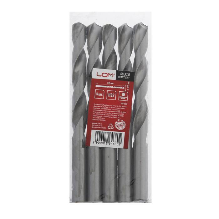 Сверло по металлу ЛОМ, HSS, цилиндрический хвостовик, 12.5 х 150 мм, 5 шт.