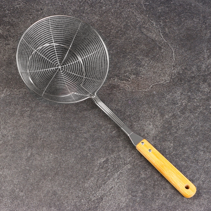 Дуршлаг-сито с деревянной ручкой 44см, диаметр18см, глубина 6,5см