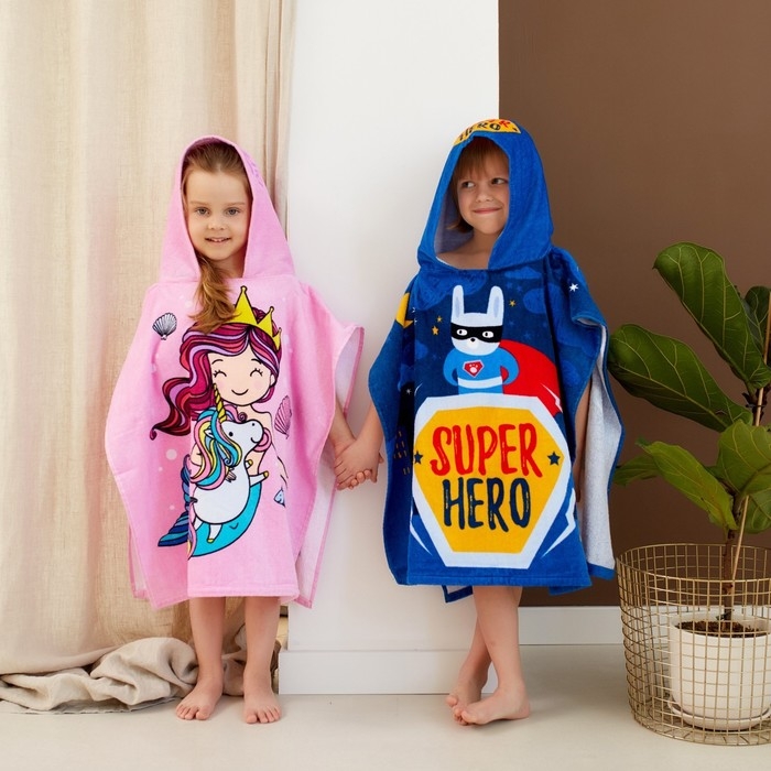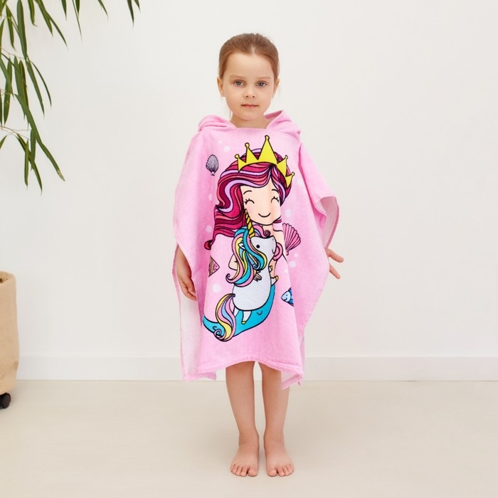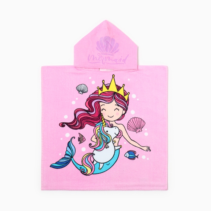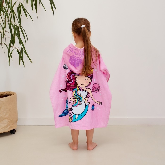 Полотенце-пончо детское махровое Крошка Я "Русалочка", 60*120см, 100% хлопок, 300гр/м2