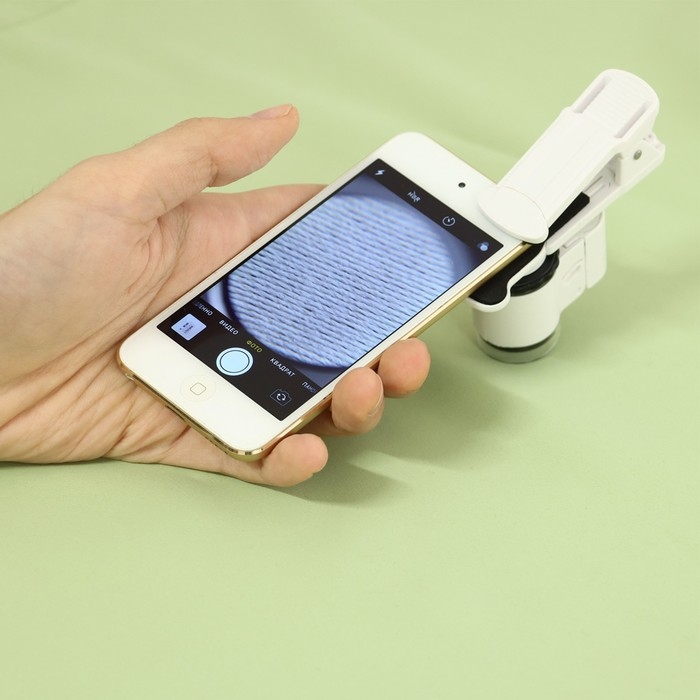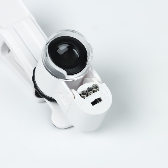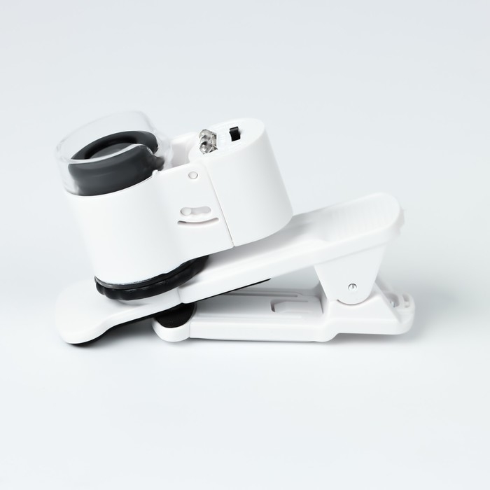 Лупа с линзой 10х для макросъёмки на прищепке для телефона, с подсветкой