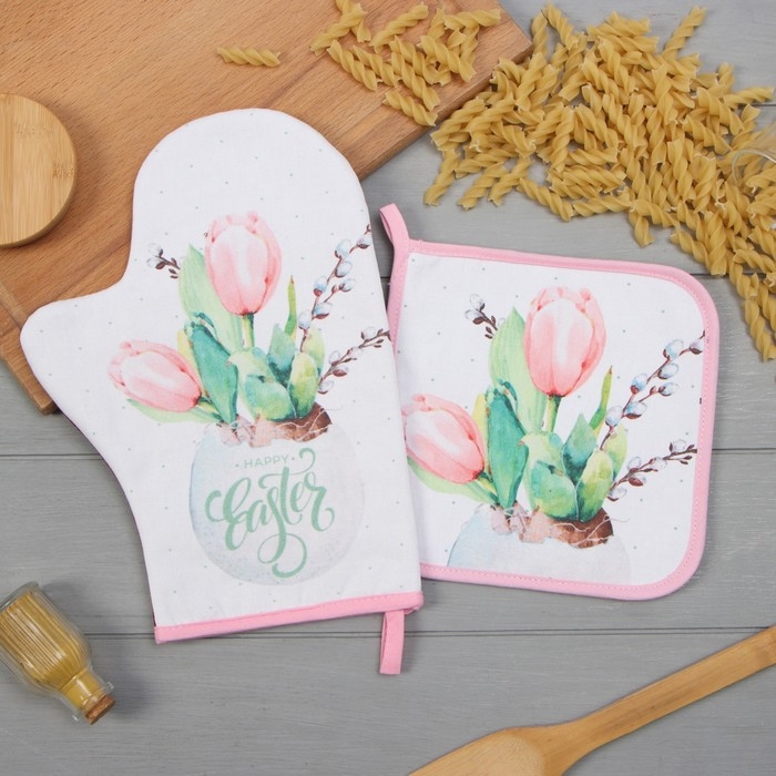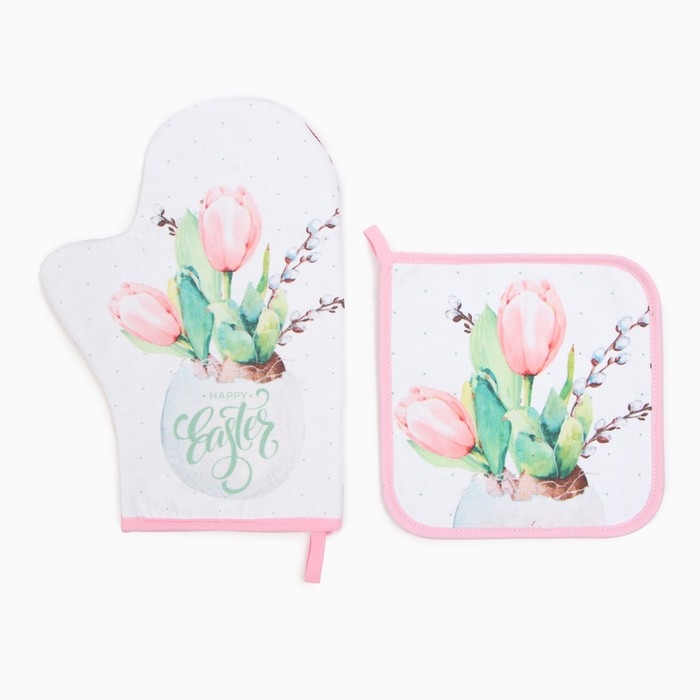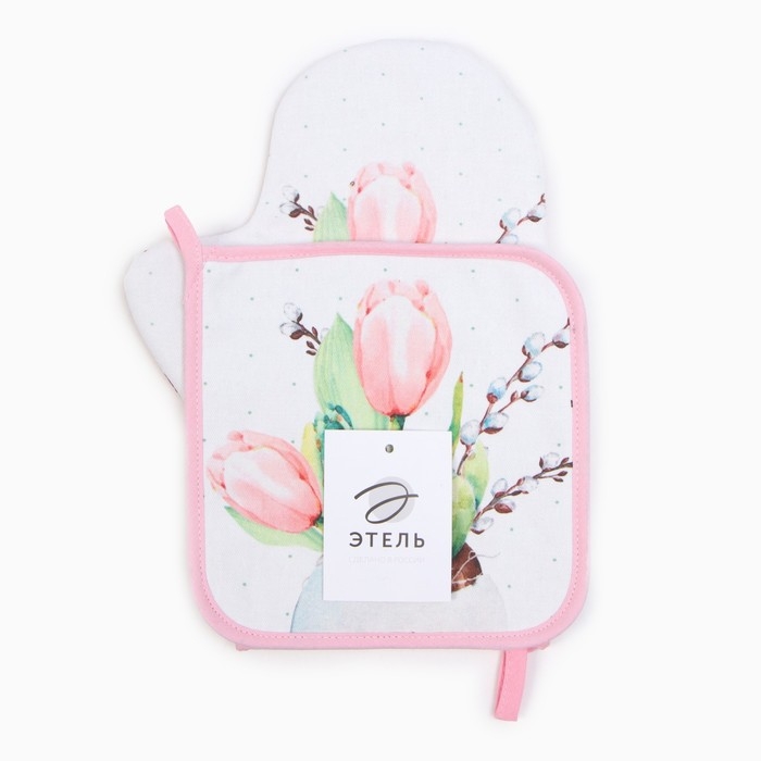 Набор кух. Этель "Тюльпаны" варежка-прихватка 20х28см, прихватка 19х19см,100% хл