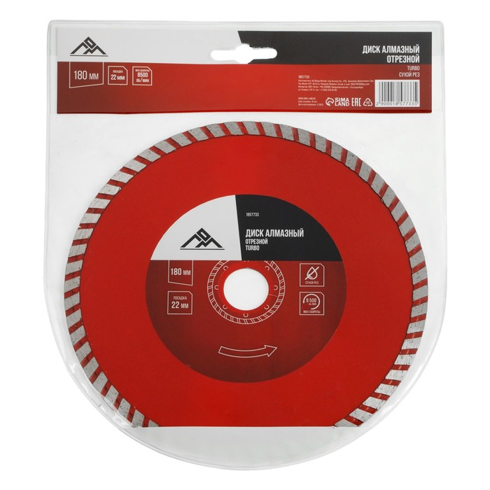 Диск алмазный отрезной ЛОМ, TURBO, сухой рез, 180 х 22 мм