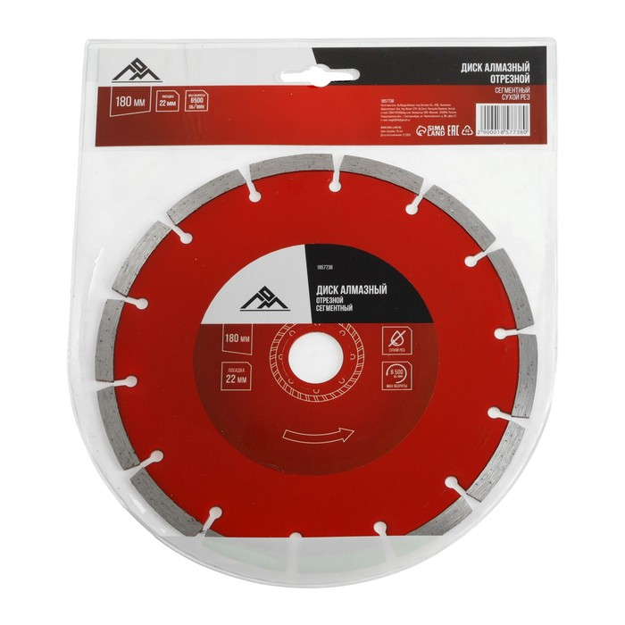 Диск алмазный отрезной ЛОМ, сегментный, сухой рез, 180 х 22 мм