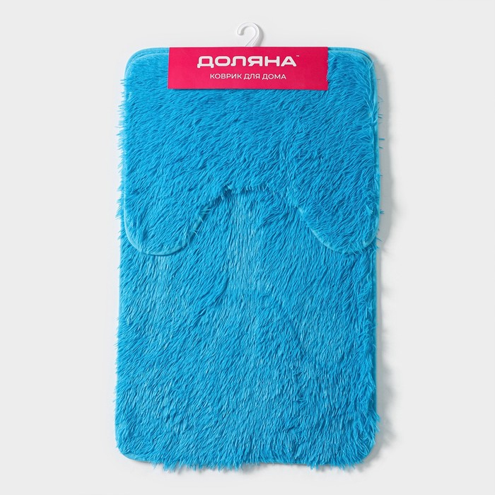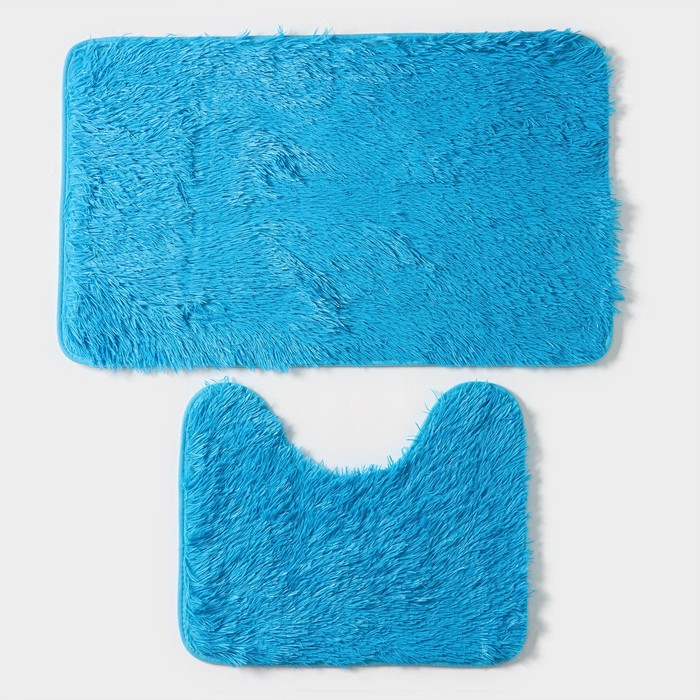 Коврики для ванной и туалета Доляна «Пушистик», 2 шт: 40×50, 50×80 см цвет голубой