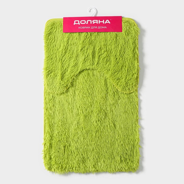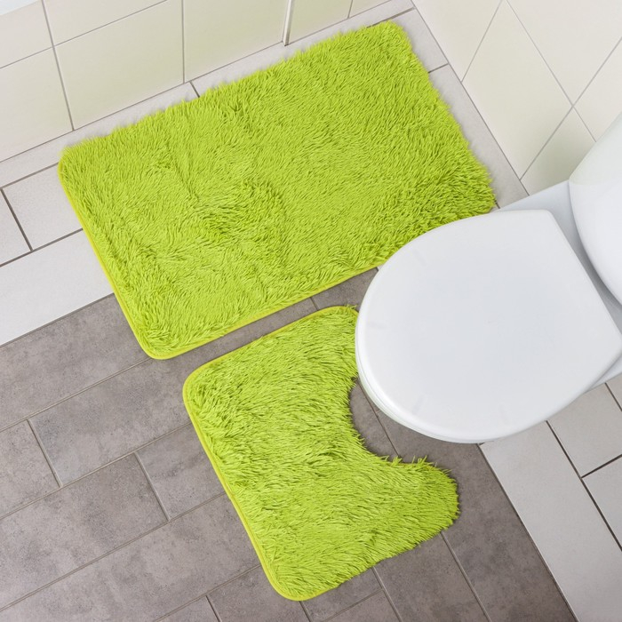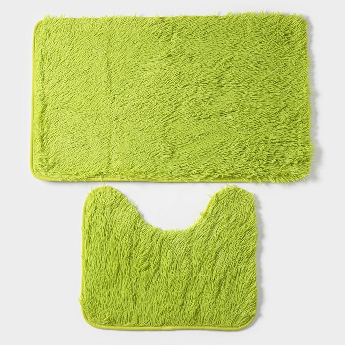 Коврики для ванной и туалета Доляна «Пушистик», 2 шт: 40×50 см, 50×80 см, цвет зелёный