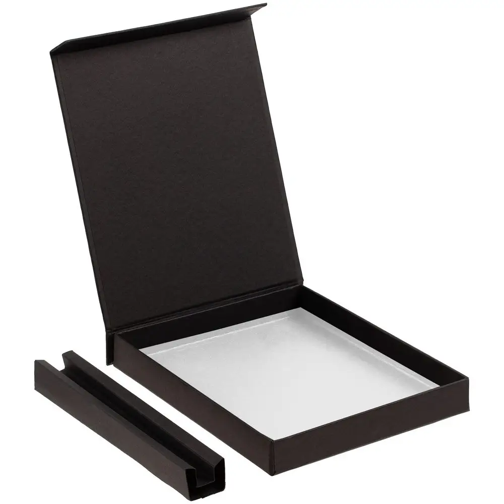 Коробка выполнена из переплетного картона, кашированного гладкой дизайнерской бумагой Magic, с крышкой на магните.