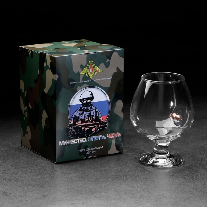 Бокал "Непробиваемый. Сухопутные", для коньяка, эмблема с пулей, 390 мл