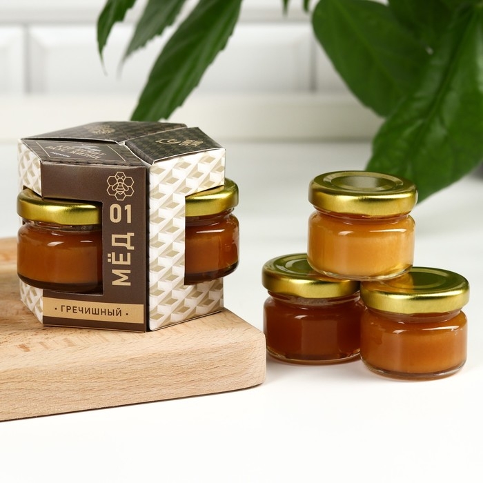 Набор «Тому, кто ценит вкус жизни»: мёд гречишный, мёд разнотравье, мёд таёжный, 3 шт. х 30 г.