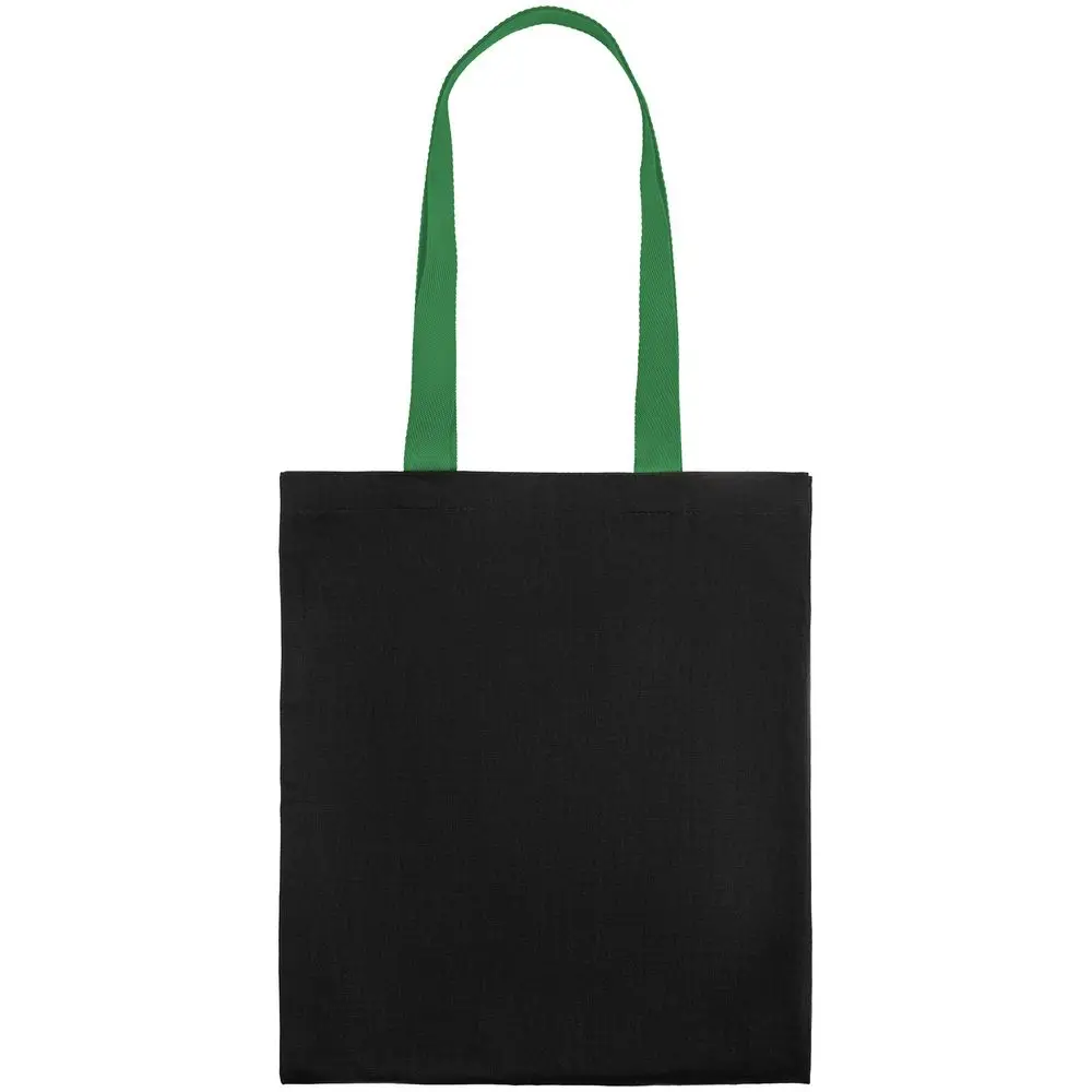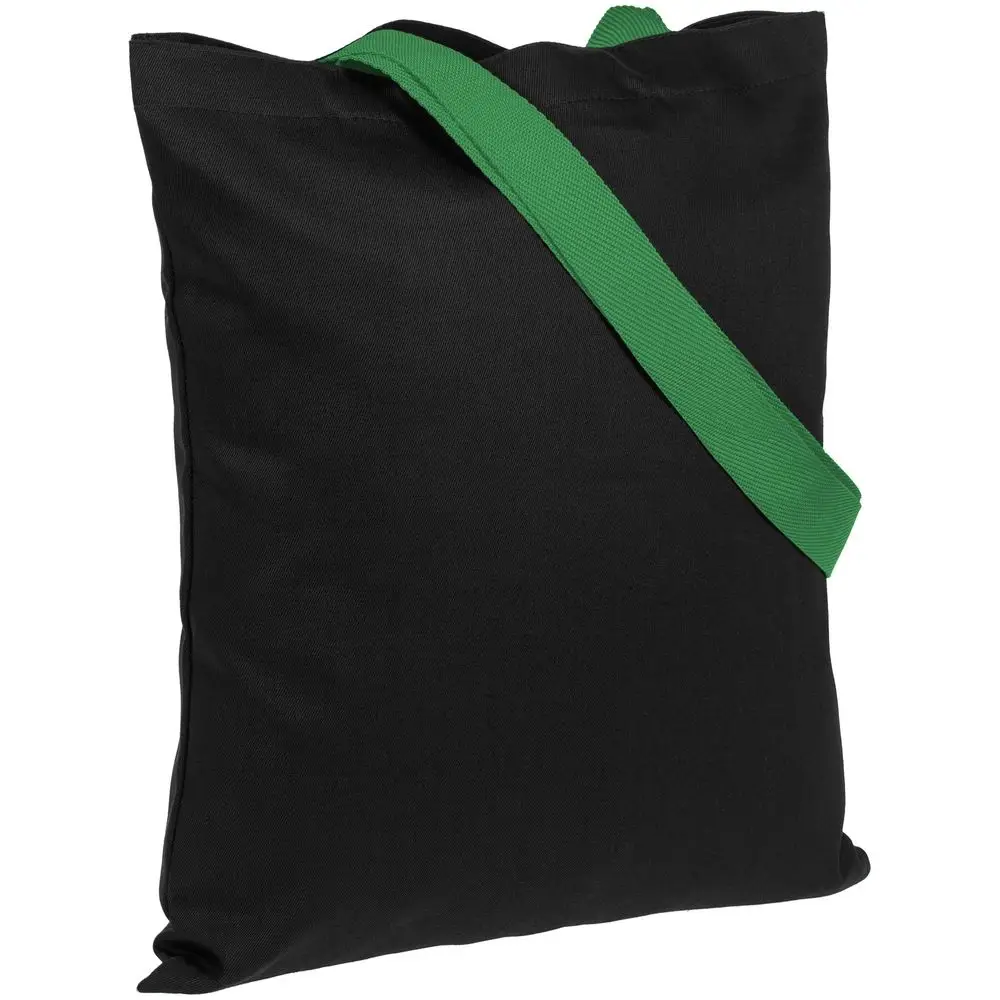 Холщовая сумка BrighTone, черная с зелеными ручками