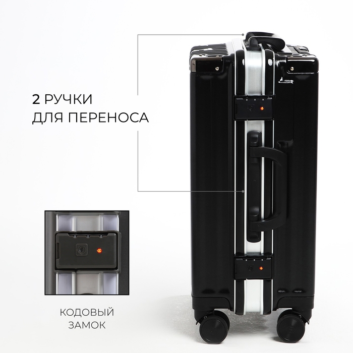 Чемодан средний 55 л (M), отдел на молнии, 2 кодовых замка, 4 колеса, крючок, цвет чёрный