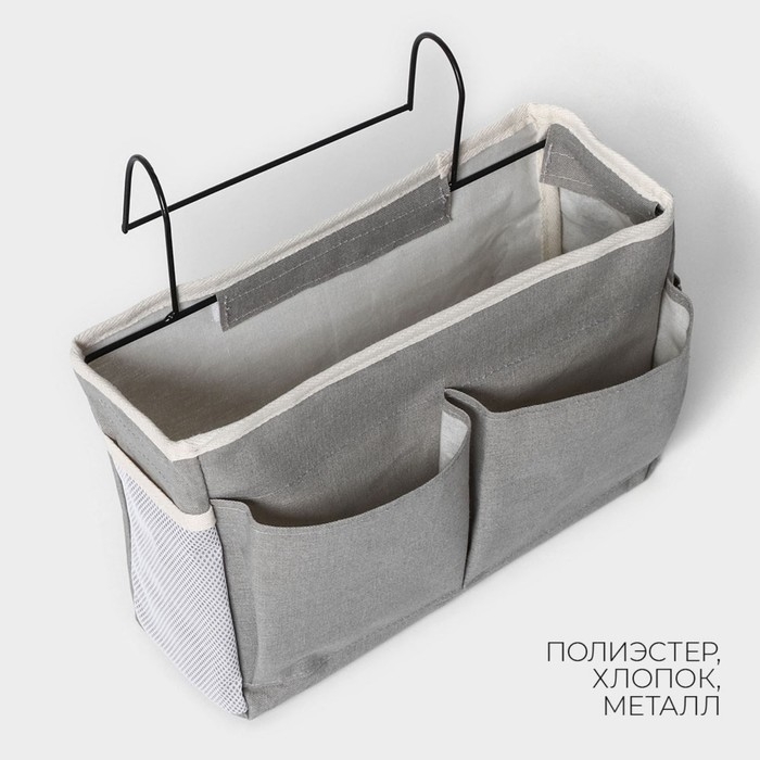 Органайзер подвесной с карманами LaDо́m, 3 отделения, 30×10×20 см, цвет серый