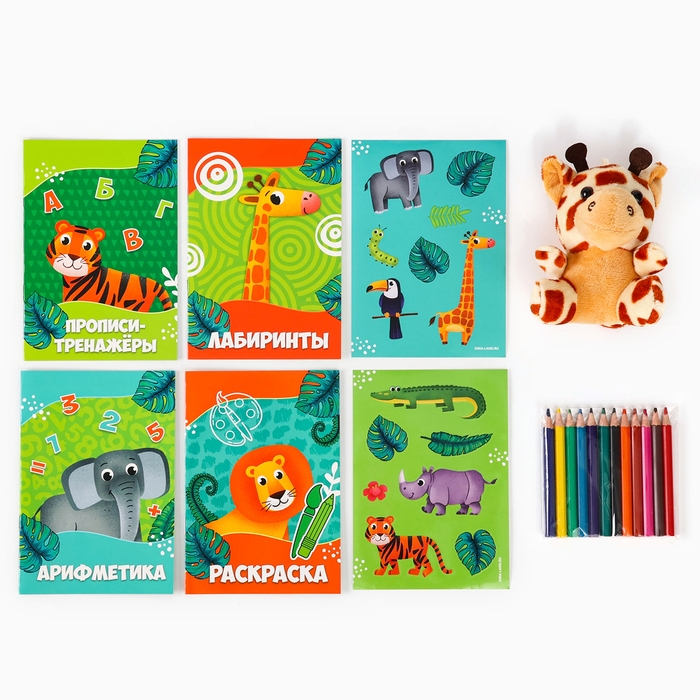 Карандаши, Мягкая игрушка, Наклейки, Прописи, Раскраска