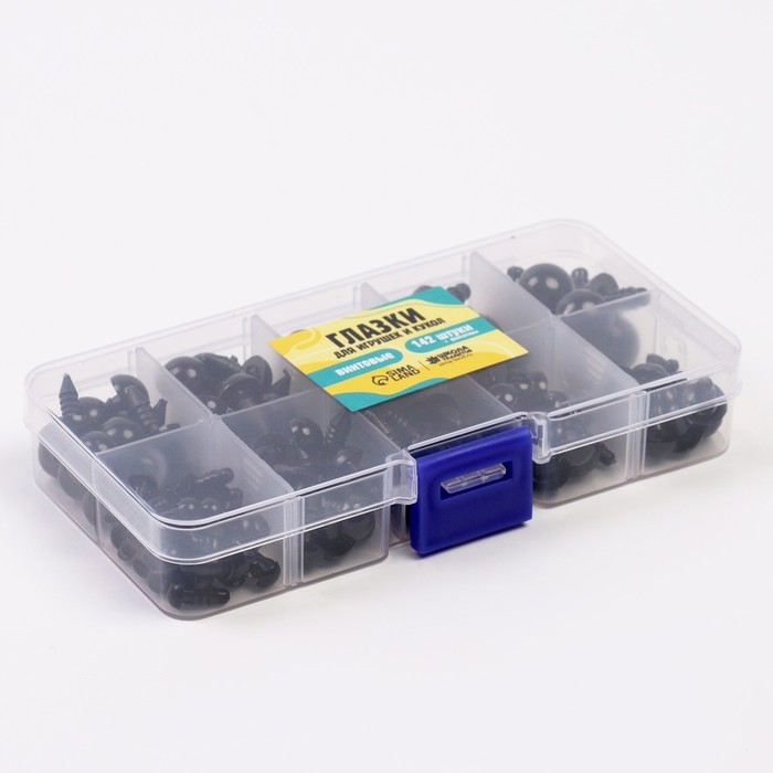 Набор винтовых глазок для кукол и игрушек с заглушками, цвет черный, 142 шт