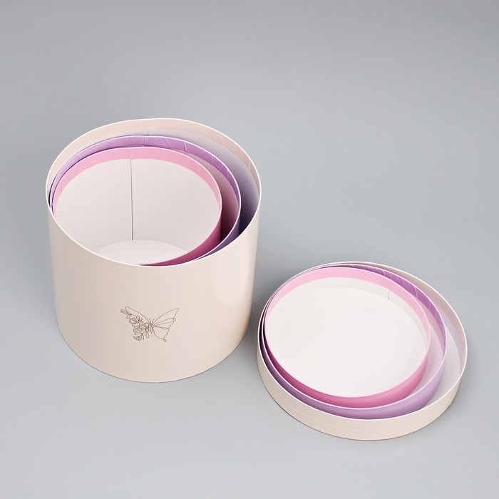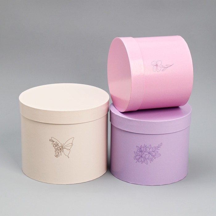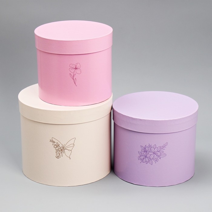 Набор шляпных коробок 3 в 1, упаковка подарочная, «Цветы», 16 х 16 х 14‒20 х 20 х 17 см