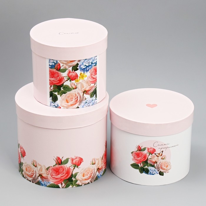 Набор шляпных коробок 3 в 1, упаковка подарочная, «Самой прекрасной», 16 х 16 х 14‒20 х 20 х 17 см